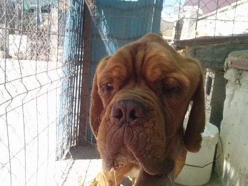 Boss ist ein Bordeaux-Doggen-Rüde., als man ihn fand, war er vollkommen dehydriert und bis zum Skelett abgemagert. Er konnte sich kaum noch auf den Beinen halten. Man stellte ihn sofort dem Tierarzt vor.