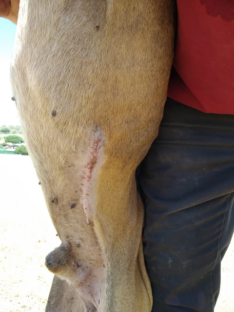 Meine OP’s liegen nun hinter mir. Beide habe ich gut überstanden. Die große Wunde am Hals wurde zuerst versorgt. Es war schon eine Herausforderung der Tierärzte hier in Spanien, ohne eine Transplantation diese zu verschließen. Was soll ich euch bellen: Es hat geklappt. Die Narbe verheilt sehr gut und die umliegende Haut fühlt und sieht sich wieder gut an.