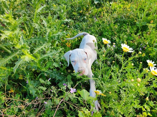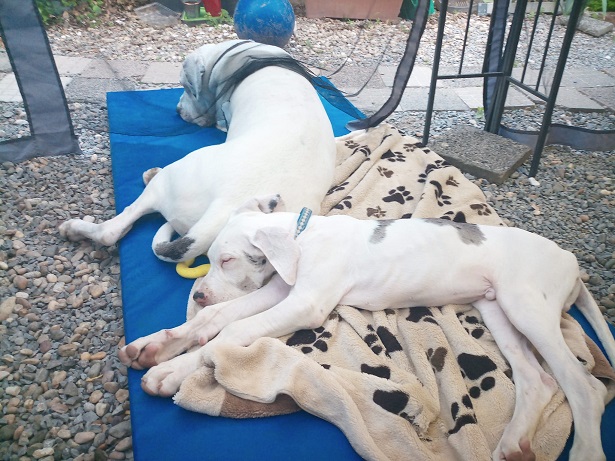 Mit 3 weiteren ausgewachsenen Doggen lebe ich nun glücklich in meiner Familie.