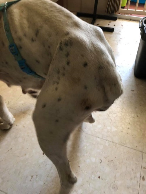 In der Klinik erhielt man Aufschluß, dass sie gerade geworfen haben mußte. Die Tierärzte denken, dass es höchstens ein paar Tage her sein kann. Es ist noch alles geschwollen und die Zitzen sind voller Milch.