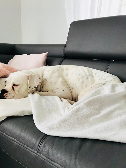 Sie ist sehr empathisch, verschmust und aufgeweckt – typisch für eine junge Boxerhündin.