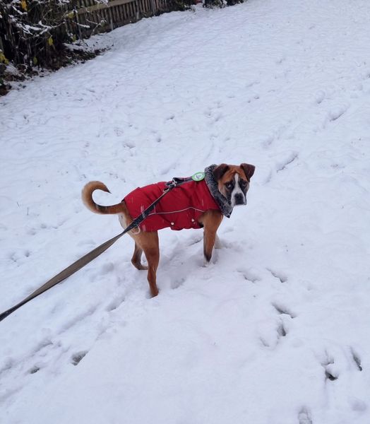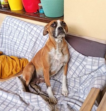 Wesen: liebes und verschmustes Boxermixmädchen, anfänglich etwas scheu