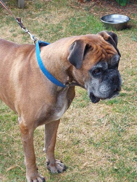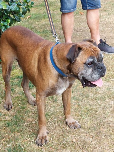Wesen: netter älterer Boxer Rüde, noch sehr fit, spielt boxertypisch gerne , menschenbezogen und verschmust