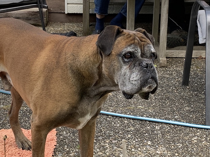Hier wohnt bereits ein älteres Boxermädchen und die mag mich so gar nicht leiden. Naja, das beruht auf Gegenseitigkeit.