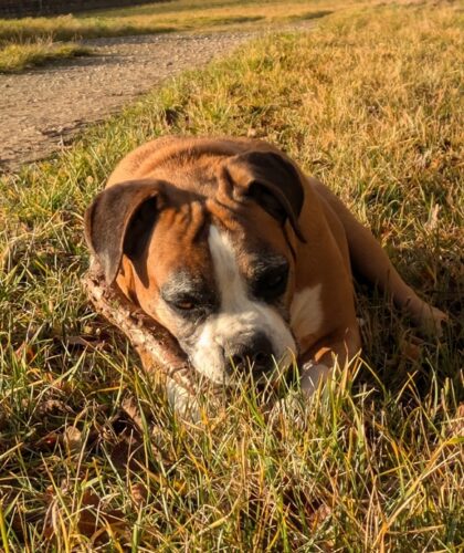 Ein Paradies auf Erden! Kuscheln, Spaziergänge, genug Futter im Napf und viel Zuneigung. All das, was mir mein ganzes Leben lang gefehlt hat. Hier bin ich mit einem lustigen Hundekumpel zusammengekommen, dem Marley Boy, auch von Ein Herz Für Boxer.