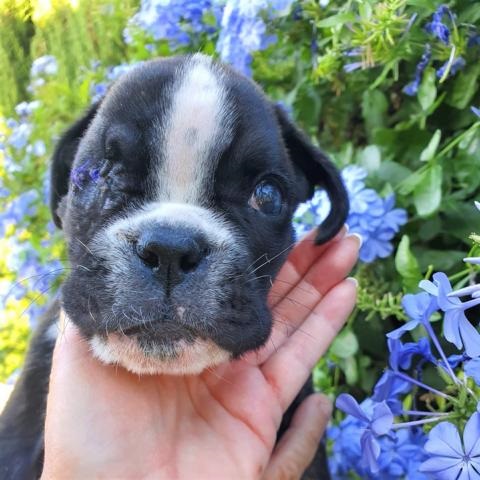Trotz ihrer Blindheit ist Poppy überhaupt nicht zu bremsen, flitzt durch die Gegend und orientiert sich schon jetzt super mit Nase und Ohren. Sie hält die ganze Familie auf Trapp, weil alle ständig auf sie aufpassen, damit diesem kleinen Boxerwelpchen beim Spielen und Toben nichts passiert.