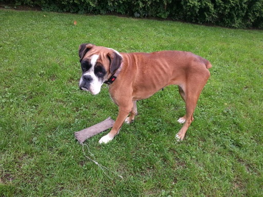 Was ich besonders gut kann und auch sehr gern mache, ist die Kampfbestie raushängen lassen, ich höre mich dann gaaanz gefährlich an – mein großer Boxerbrustkorb hilft mir dabei. Die vier Kater, die hier schon zuhause waren, bevor ich kam und mit denen ich mich sonst gut verstehe, nehmen mich in solchen Situationen ernst und gehen stiften. Doch mein Herrchen traut sich als Gegner und nimmt die Herausforderung an: Er kämpft mit seinen beiden Händen und ich mit Maul und Vorderpfoten. Da geht die Post so richtig ab – so lange, bis ich ein „nein“ höre, dann weiß ich, zumindest für die erste Runde ist erst einmal Schluss. Frauchen versucht mich spieletechnisch für einen Ball oder einen Strick zu begeistern, doch kann ich diesem Spielzeug kaum was abgewinnen. Vielleicht wird es ja noch ….