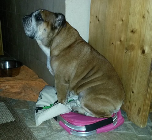 Zuchthündin, die dadurch ein ordentliches Päckchen zu tragen hatte..
