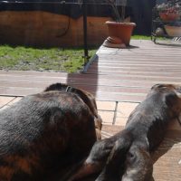 Am nächsten Tag war schon alles gut. Dean und ich toben im Garten und kuscheln zusammen. Spazieren gehen zusammen finde ich auch