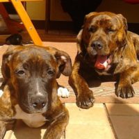 Hier melden wir uns nun auch einmal. Wir, die Babies von Odilia. Eine kleine Gang von Boxer-Doggen-Mix-Welpen.