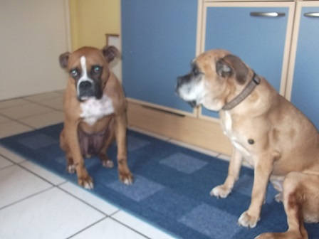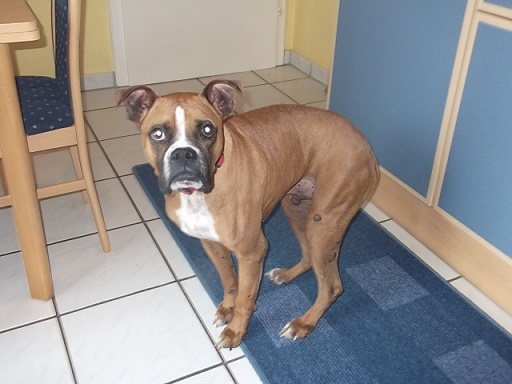 Gerade mal auf meiner Pflegestelle bei der Rasselbande angekommen, da hatte ich schon Besuch. Durch den Verlust ihres alten Hundes, wollte man eigentlich nur nachfragen und sich über Boxer informieren. Aber ich wußte gleich: das ist mein neues Herrchen – auch wenn das ihm vielleicht noch nicht klar war.