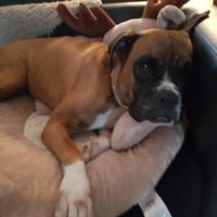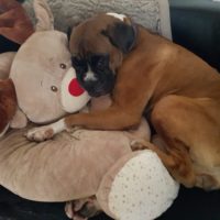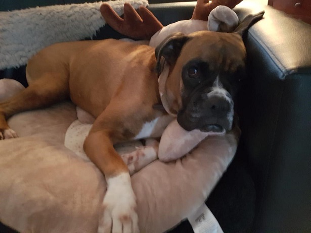 Große Ansprüche stelle ich nicht mehr an Euch. Ich bin gerne mittendrin, jedoch kann ich auch eine Weile alleine bleiben. Umso größer ist dann meine Freude, wenn Ihr zurück kommt. Dann kringele ich mich wie ein Wurm und begrüße Euch so richtig boxertypisch.