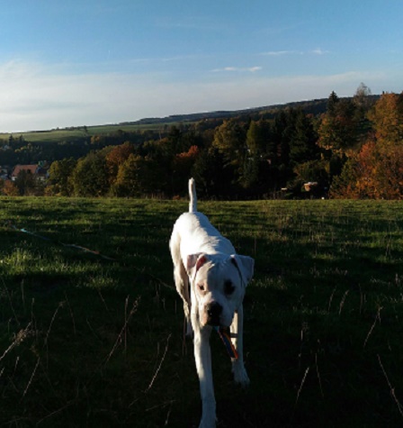 Beim Tierarzt waren wir auch schon, dort habe ich mich vorbildlich verhalten – bei Frauchen auf dem Schoß gelegen, bis wir dran waren, auch beim Blut abnehmen und Ohrenreinigen habe ich keinen Mucks von mir gegeben. Momentan wiege ich 18kg, da muss Frauchen wohl noch ordentlich zu füttern.