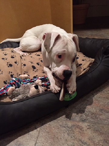 Ich komme ursprünglich aus Spanien und bin ein kleiner 7 Monate alter Boxerjunge und taub.