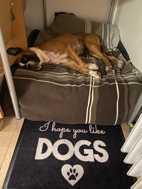 Meine neue Mama meinte nur, das ist jetzt sicher der dritte Boxer, der nicht schwimmen will bzw. kann.🤣 Dabei wünscht sie sich so sehr, dass ich am Baggersee oder im Meer mit ihr schwimmen gehe. Aber wer weiß, wir haben diverse Schwimmwesten, die Hoffnung stirbt zuletzt.😂