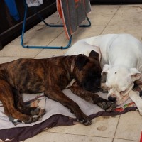 Auch das anfängliche alleine bleiben, konnte ich schon gut mit meinen Hundefreunden üben, hier ist es gar kein Problem. Wenn ich ganz alleine bleiben soll, brauche ich erst ein, zweimal die positive Erfahrung das die Menschen auch wieder zurück kommen. Ich verspreche dafür auch das ich mich auf Boxertypische Art freue wenn ihr dann wieder zu Hause seit.