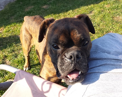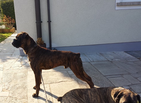 Auch das anfängliche alleine bleiben, konnte ich schon gut mit meinen Hundefreunden üben, hier ist es gar kein Problem. Wenn ich ganz alleine bleiben soll, brauche ich erst ein, zweimal die positive Erfahrung das die Menschen auch wieder zurück kommen. Ich verspreche dafür auch das ich mich auf Boxertypische Art freue wenn ihr dann wieder zu Hause seit.