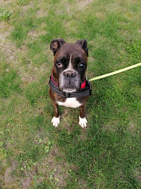 Nun denkt aber nicht, ich sei eingebildet. Im Gegenteil! Ein ganz soziales Boxermädchen, das jedem Ärger aus dem Weg geht und sich mit allen 2- und 4 Beinern arrangiert!
