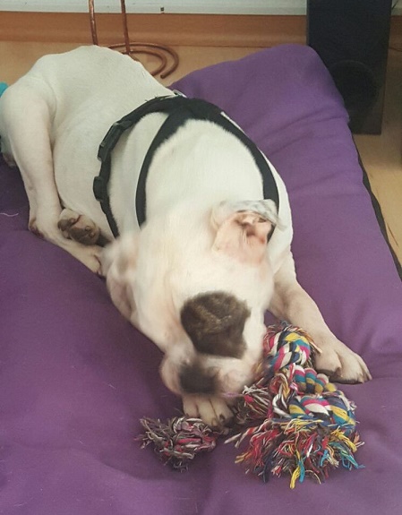 Piggy hat an beiden Hinterbeinen eine Patellaluxation, welche ihr momentan aber noch keine Schwierigkeiten bereiten.