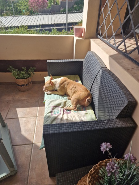 Gesundheit: Sie hat Knieprobleme und kann nicht operiert werden, aber sie ist sehr muskulös und führt, obwohl sie einen eigenartigen Gang hat, (man meint, sie tanzt und sie bringt mich immer zum Lachen) ein normales Leben.