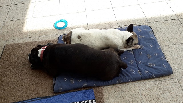 Bitte beachten Sie: Englische & Französische Bulldoggen haben viele typische Erkrankungen. Wenn Sie eine Bulldogge adoptieren wollen, sollten Sie sich dessen bewusst sein. Fast jede Bulldogge hat Augen-, Ohr-, Zahn- und Fellprobleme. (cherry eye, Demodex, Hühnerallergie…) Jede zweite Bulldogge hat Rücken- oder Gelenkprobleme. (Patella luxation, Arthrose, Spondylose, Hüftdysplasie…) Viele Bulldoggen haben Probleme mit der Atmung. Die Gesichtsfalten und Ohren müssen täglich/wöchentlich gereinigt werden, genau wie die Zwischenzehenräume. Zudem haben Bulldoggen oft starken Mundgeruch.