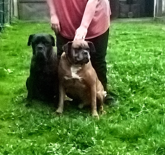 Der Empfang durch mit meine Pflegeeltern war sehr schön. Dort angekommen, war ich natürlich etwas aufgeregt und schlecht gelaunt. Man hat mich erstmal zur Ruhe kommen lassen und verwöhnt. Am nächsten Tag habe ich dann Freundschaft mit den Boxern Bonny und Showder geschlossen.