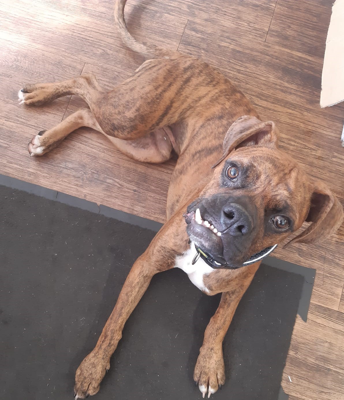 Wesen: super lieber und anhänglicher junger Boxer, leinenführig, Kieferschiefstellung