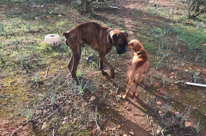 Nun bin ich auf einer Pflegestelle mit Artgenossen untergekommen. Hier fühle ich mich schon besser und ja, ich orientiere mich an den anderen Hunden und langsam kommt mein Appetit zurück.