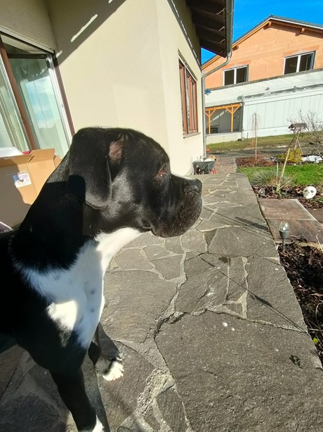 Hier gibt es einen großen Garten nur für mich, in dem ich viel toben kann und drinnen ist es erst gemütlich. Ich habe sogar zwei Betten, aber am schönsten ist es auf der Couch, wo ich von meinen Lieblingsmenschen gleichzeitig gekrault werde, oder liege bei Frauchen im Arm. Hier fühle ich mich Pudel (Boxer)wohl.