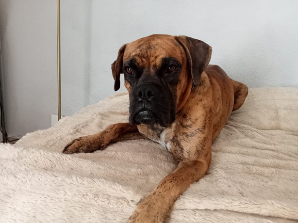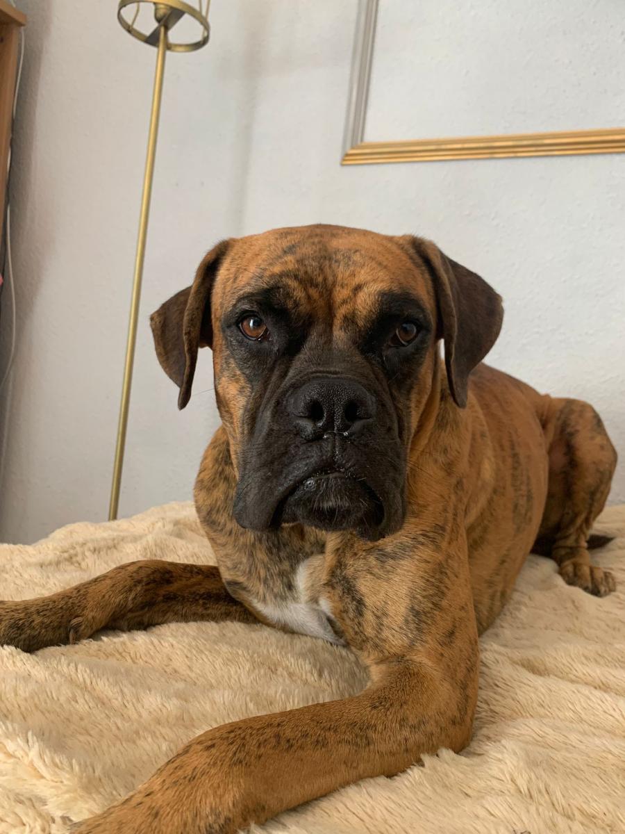 Wesen: anfangs misstrauischer Boxerrüde, der ein ruhiges Zuhause mit viel Liebe und Geduld braucht und gerne eine nette Hündin an seiner Seite