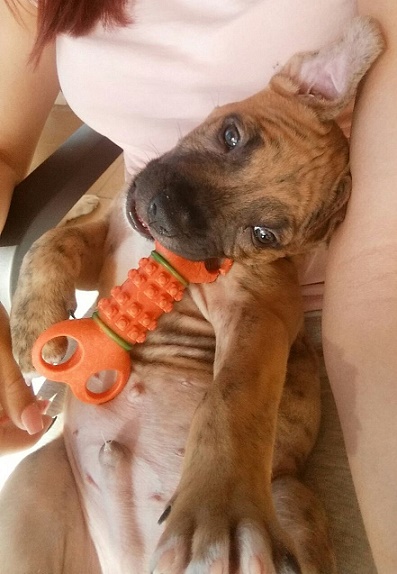 englischer Bulldog, der mich ein wenig betreut. Ausser dem eine echt tolle Familie. Die Kinder sind ganz prima und ich fühle mich richtig wohl. Wie ihr seht habe ich mich prima entwickelt.