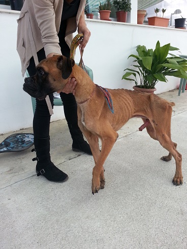 So wurde dieser junge Boxer in Granada aufgefunden und in die Protectora gebracht.