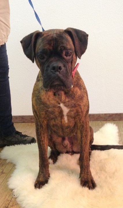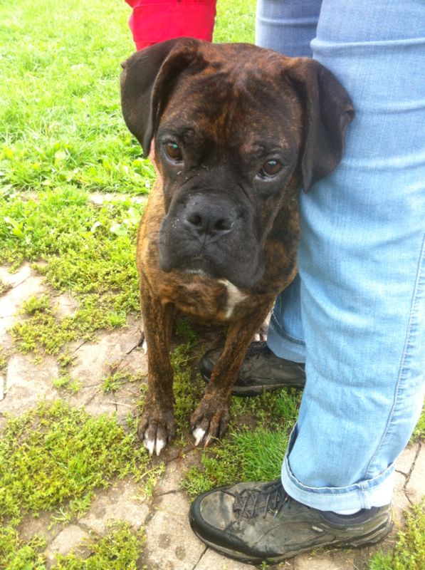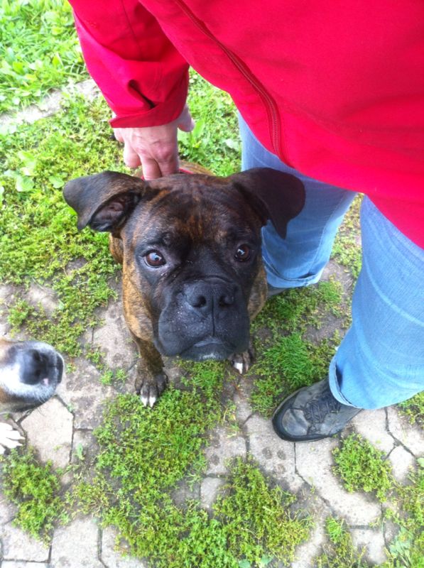 Als ich hier ankam war ich ja ein kleines Häufchen Elend und nun, dank guter Pflege meines Frauchens habe ich mich zu einem tollen Boxer gemausert.
