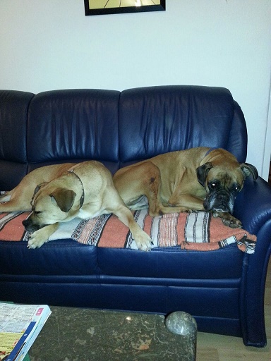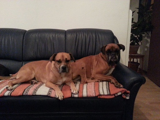 Mein zweites Hobby ist chillen auf dem Sofa – was hier eh praktiziert wird. Am liebsten mit meiner Freundin Boxina zusammen!