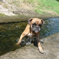 Rokkababoo ist eine ca. 10 jährige, reinrassige Boxerhündin mit schwarzer Maske.