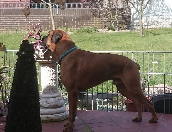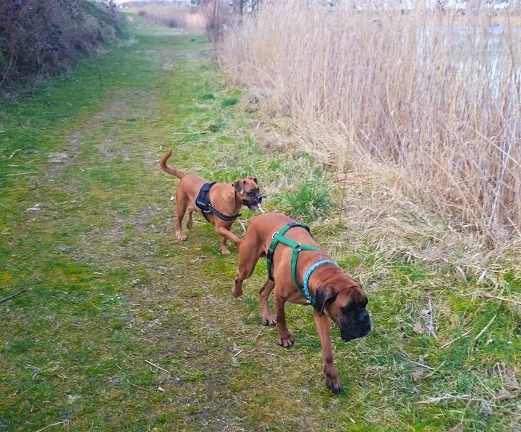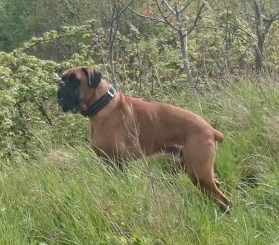 Ansonsten bin ich auch sehr gerne an der frischen Luft.. so ein toller Spaziergang finde ich super und ich habe auch eine sehr gute Leinenführigkeit. Gut abrufbar bin ich auch, besser als meine Boxerdame, aber psst… nicht weiter sagen, sonst meckert die Dame des Hauses.