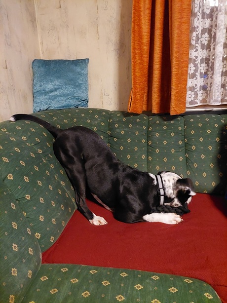 Der angekündigte Wirbelwind entpuppte sich rasch als ein mit viel Energie geladener Hurricane. Keine Tür und kein Tisch ist vor ihr sicher. Die Nachbarn waren auf Anhieb verliebt und an denen müssen wir noch arbeiten, damit sie das „Wir geben der Süßen Leckerli“- Problem in den Griff bekommen.