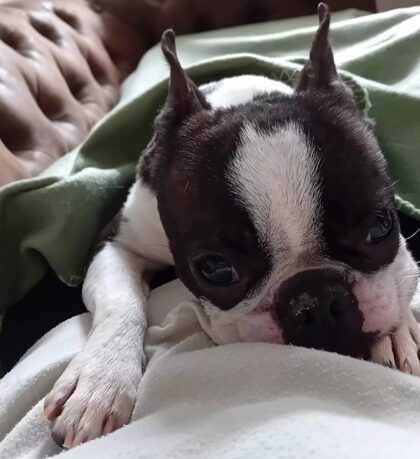 Unsere Boston Terrier Sippe kommt auch aus der gleichen Beschlagnahmung in Spanien wie unsere EB-Family und wird derzeit bei unseren Partnern liebevoll betreut.