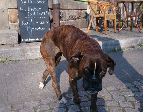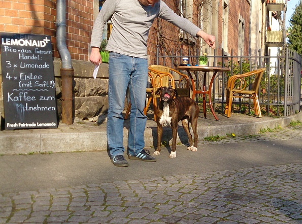 Jeden Tag darf ich mein neues Herrchen in seinen Laden begleiten und das Geschehen draußen durch die offene Türe beobachten.