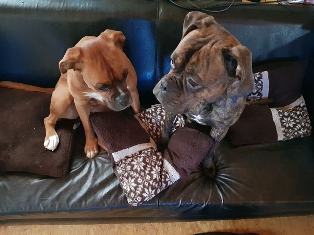 Die ersten Tage waren wohl etwas schwierig für mich. Zuhause verloren, neue Umgebung und dann auch noch ein Boxermädchen im neuen Heim, dass ganz schön viel von mir forderte………….