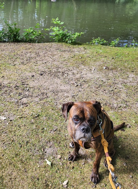 Aber nun erstmal zu mir. Ich bin ein zwei Jahre alter Boxerrüde, brauche noch einiges an Erziehung wobei mir das Lernen mit meinem Menschen viel Spaß macht und ich mich super an ihm orientiere.