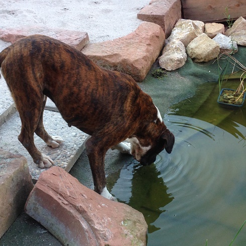 Unser Teich war sein Wassernapf und den dazugehörigen „Sandstrand“ hatte er damals sofort umgegraben.