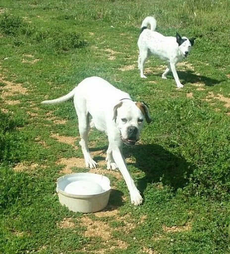 Theo geht sehr schön an der Leine, auf der freien Wiese darf er alleine mit Bobby toben. Er dreht Runden ohne Ende und kann bei einer Ruhepause richtig laut bellen.