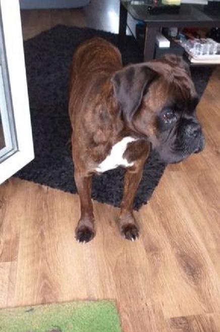 Ich bin eine kleinere Boxermaus, die gerne kuschelt und schmust! Mit Artgenossen bin ich verträglich und lebe seit vielen Jahren mit Dino zusammen.