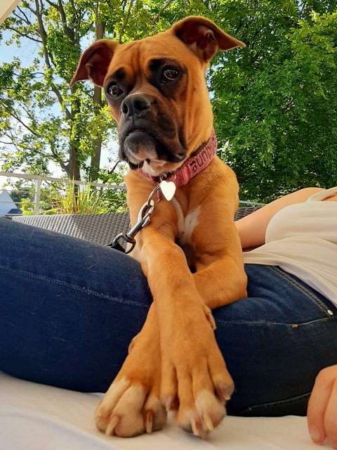 Zu mir kann ich nur sagen, dass ich eine entzückende kleine Boxermaus bin. Gut erzogen und verträglich. Manchmal bin ich ein wenig stur – so typisch nach Boxermanier!