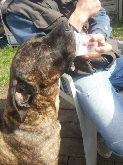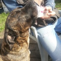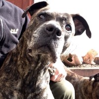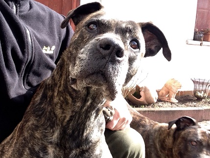 Thyson ist ein sehr lieber und verschmuster kastrierter Rüde mit kupierter Rute und hat die gleichen Eigenschaften wie Sindy. Laut Impfpass der Vorbesitzer ist er als Mix angegeben, entspricht jedoch eindeutig den Rasseeigenschaften eines Cane Corso. Er ist auch sehr verschmust und für sein Alter sehr agil. Fremde Menschen und Kinder, egal welchen Alters, sind überhaupt kein Problem. Thyson liebt Spaziergänge, liegt gerne draussen im Garten und sucht im Haus immer die Nähe seiner Menschen. Auch er ist absolut stubenrein, sehr gut leinenführig und reagiert auf Kommandos.
