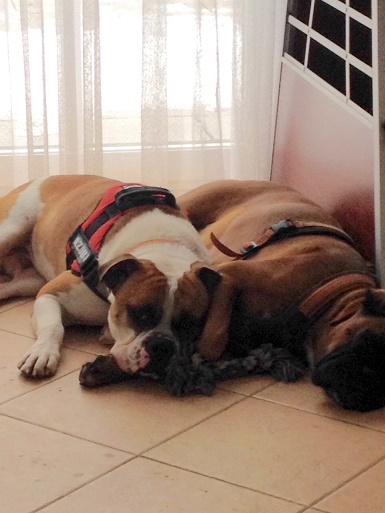 Klasse aber ist Chispal, ein super Boxer Mädchen. Mit der kann ich toben, Unsinn machen und natürlich kuscheln. Es war Liebe auf den ersten Blick.
