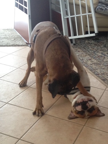 Mit Hilfe unserer Boxerhündin hat er schnell Vertrauen aufgebaut und sich zu einem tollen Hund entwickelt.