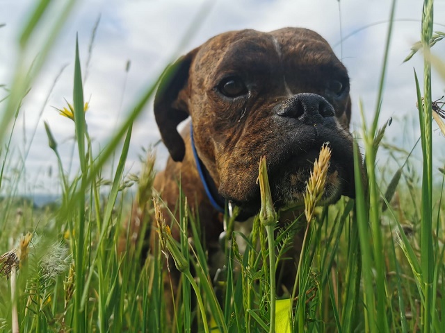 Ich bin seit dem 19. Mai in Treisbach auf einem kleinen Bauernhof mit 2 neuen Freunden, dem Mr. Moto (Ein Herz für Boxer) und Sheila. Das kennenlernen funktionierte gut, da ich so total verängstigt bin konnte ich buchstäblich nicht laufen und mußte getragen werden.