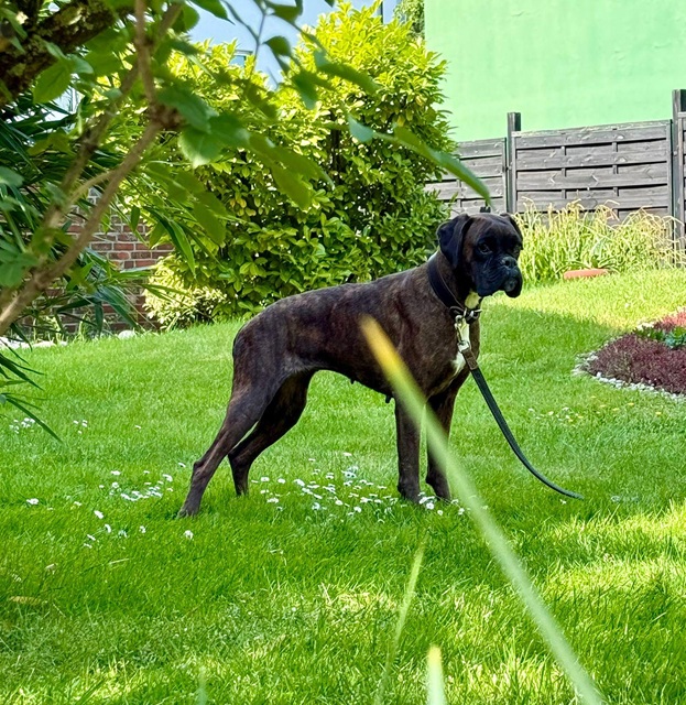 Meine neue Familie ist total glücklich mit mir. Ich muss noch viel lernen: autofahren, Treppen laufen und die Leine sind für mich noch fremd..davor habe ich noch ziemlich viel Angst.